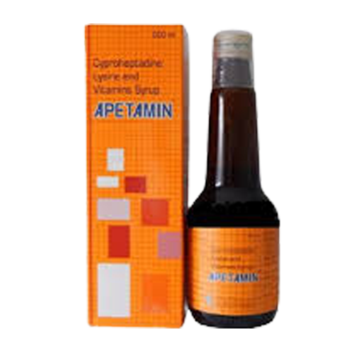 Apetamine Syrup contains Cyproheptadine that provides relief from allergy symptoms. Apetamine Syrup 200ml has an appetite-stimulation effect and is used to stimulate hunger in patients with appetite loss.