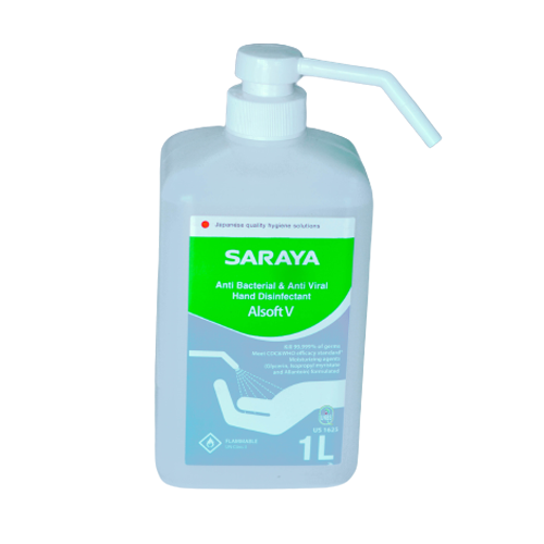 Saraya hand sanitizer contains 80% alcohol and is used for hygienic and surgical hand disinfection working against a wide variety of microbes. It should be applied thoroughly on the hands.